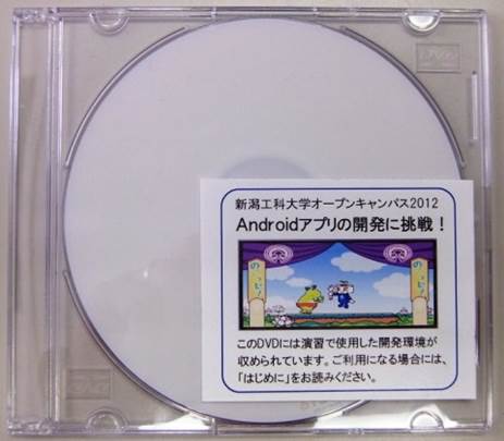 まずは、スマートフォン、タブレット端末向けのソフトウェア開発環境を構築し、基礎的な演習を行うDVD教材を作成しました。