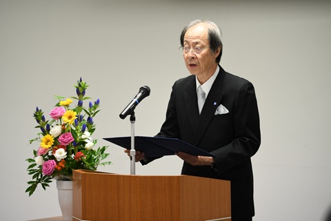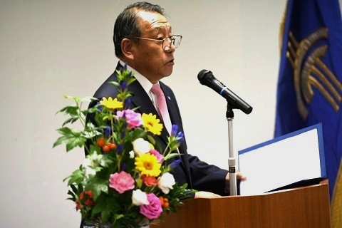 田邊裕治学長は式辞で新入生への歓迎の意を表し、来賓からは法人を代表して大倉正寿理事長から祝辞をいただきました。これに対し、新入生は新入生紹介で日本・本学への留学を決意したきっかけやこれからの学生生活に向けた目標を述べました。