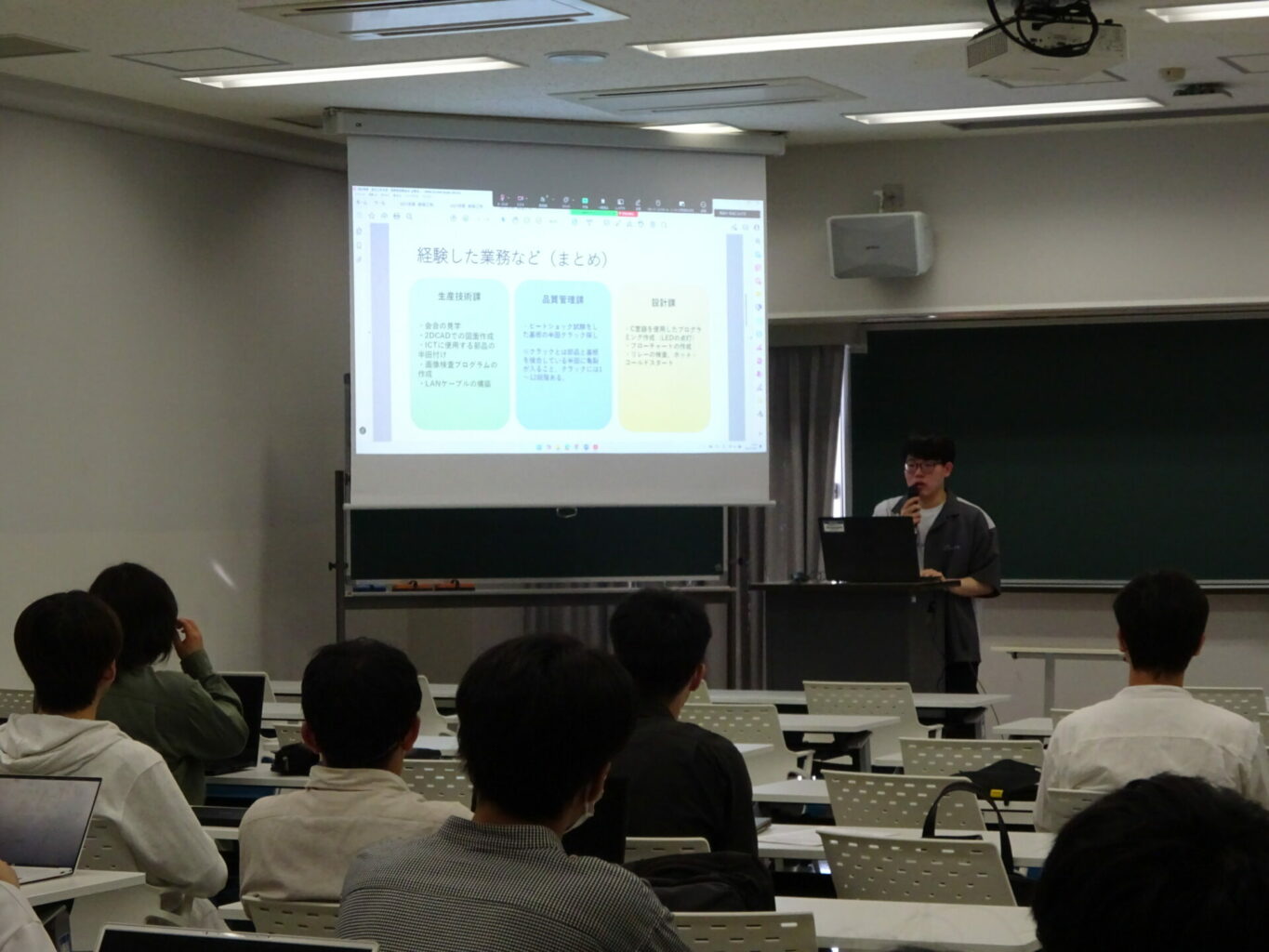 学生からは、実習先での特に印象に残ったエピソードなどが披露され、体験してはじめて気づくことの多さや、熱心にご指導くださった実習先の社員の皆様への感謝の言葉を多く聞くことができました。