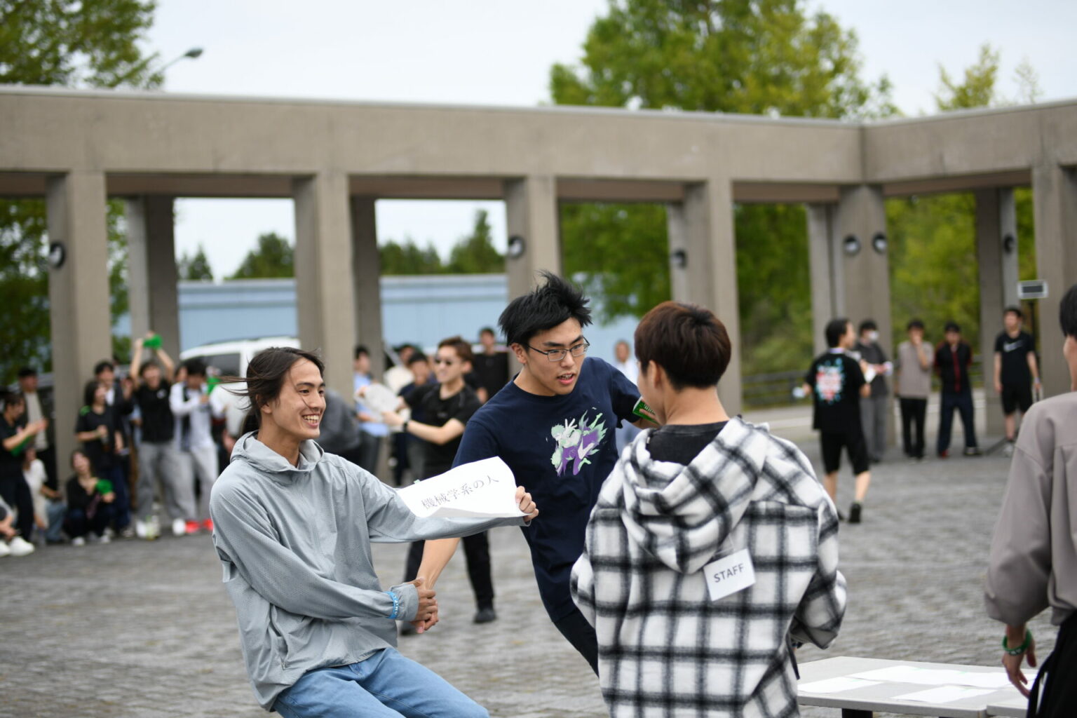学生から「工科大祭と同じくらいの規模で、多くの学生が参加するイベントをやりたい!」という声が上がり、開学以来初となる学系対抗の体育祭が実現しました。