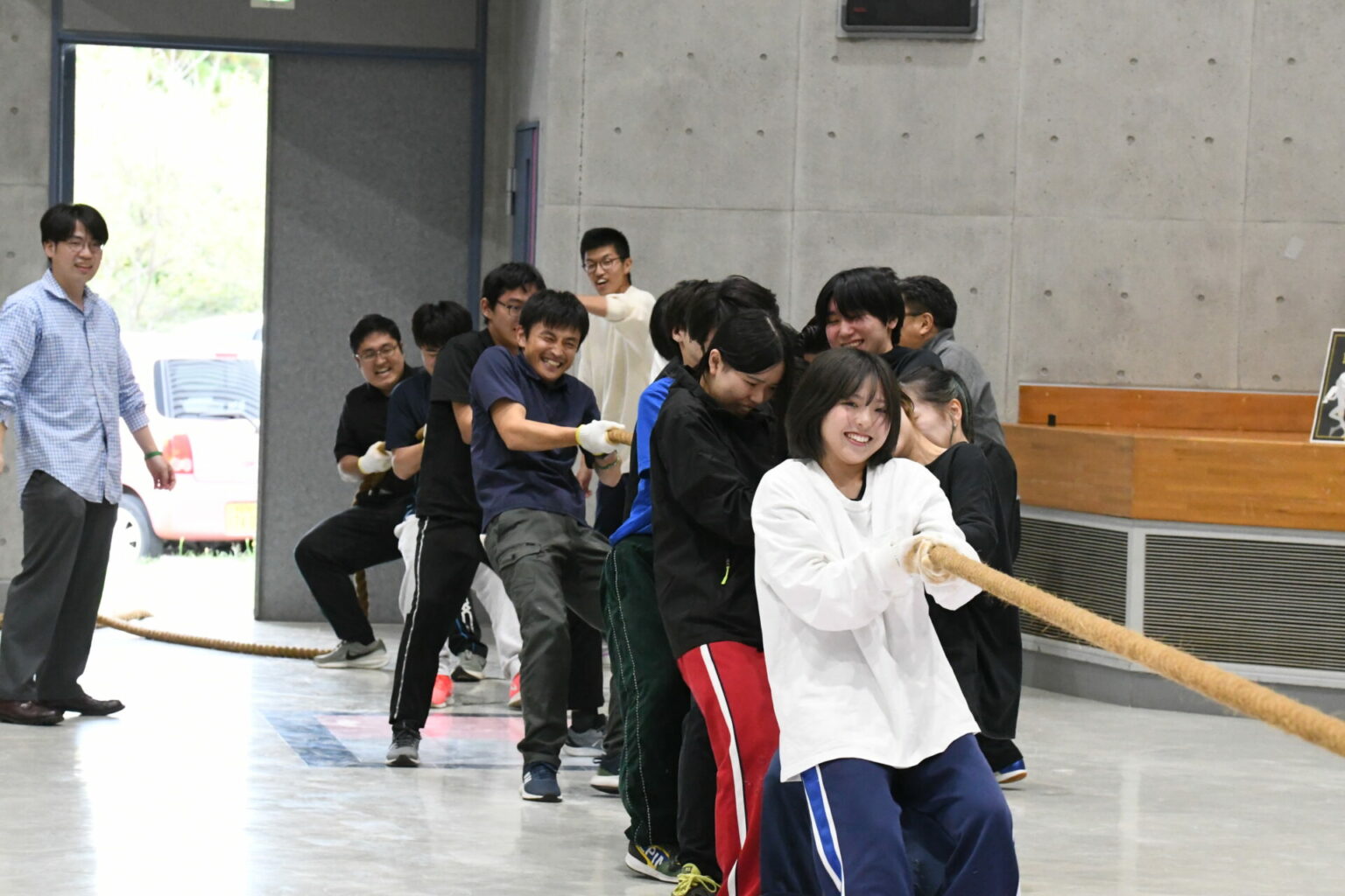 各学系15名によるトーナメント形式の綱引き。