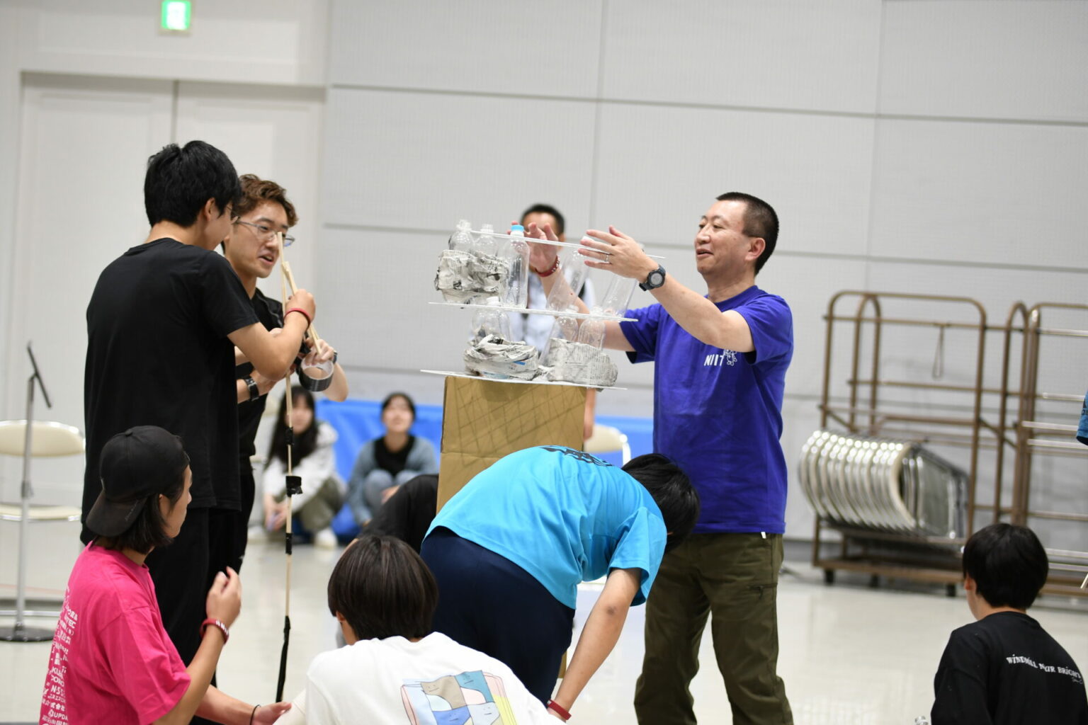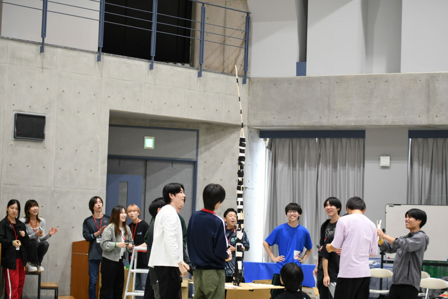 段ボール・紙コップ・割りばしなどを使い、即席でタワーの高さを競う学生考案のオリジナル競技。