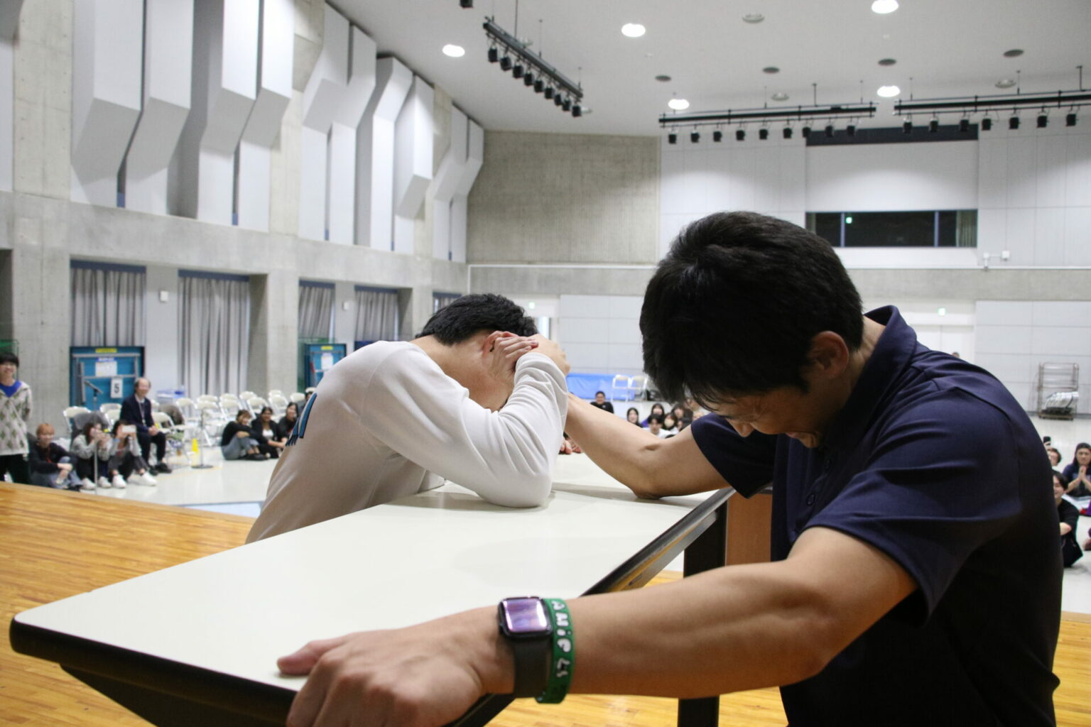 各学系で最も活躍した学生にはMVP賞が授与され、建築都市学系では学生と教員が同点となり、腕相撲で決定する場面も!