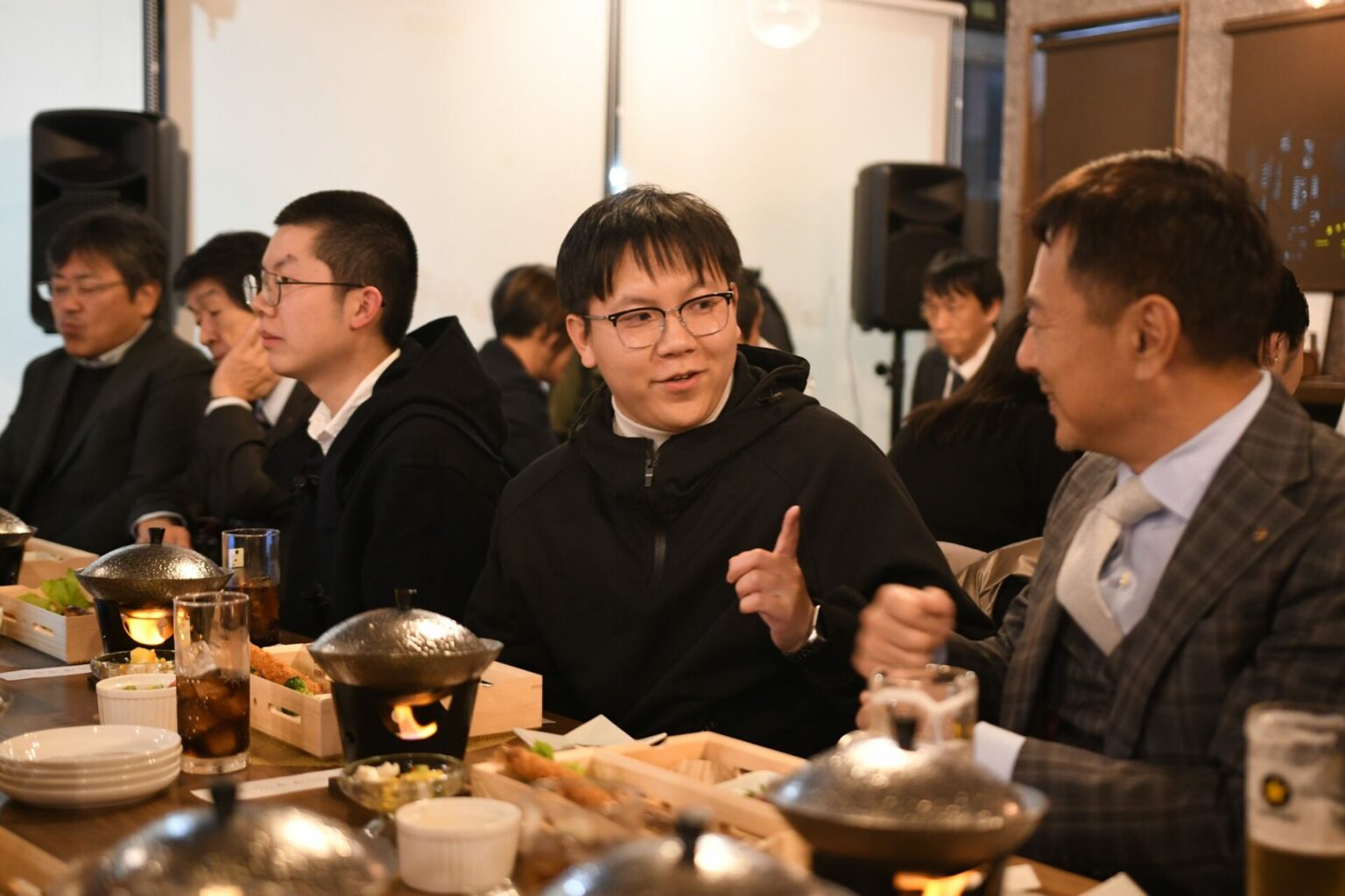 表彰式の後には、ロータリークラブの皆さまのご厚意により、留学生との懇親会を兼ねた恒例のクリスマスパーティーが開催されました。会場では、各国の文化や研究内容、料理の話題などを交えながら、和やかな雰囲気の中で交流が深まりました。国際色豊かな会話が飛び交い、留学生たちにとっても貴重なひとときとなりました。