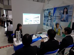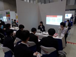 降雪の影響により在来線が運休する中、参加学生は興味関心のある企業ブースを回り、真剣な眼差しで各企業の特色や業務内容等の説明を聞き、メモを取ったり積極的に質問する姿が見受けられました。