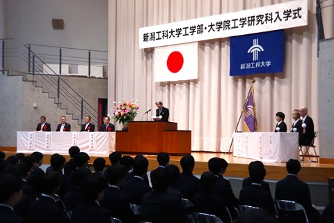 式典では、まず田邊学長が式辞を述べ、新入生一人ひとりの挑戦と成長を後押しする言葉を贈りました。続いて祝辞では、柏崎市長および法人を代表して大倉理事長より、未来を担う学生への励ましと祝福のメッセージをいただきました。