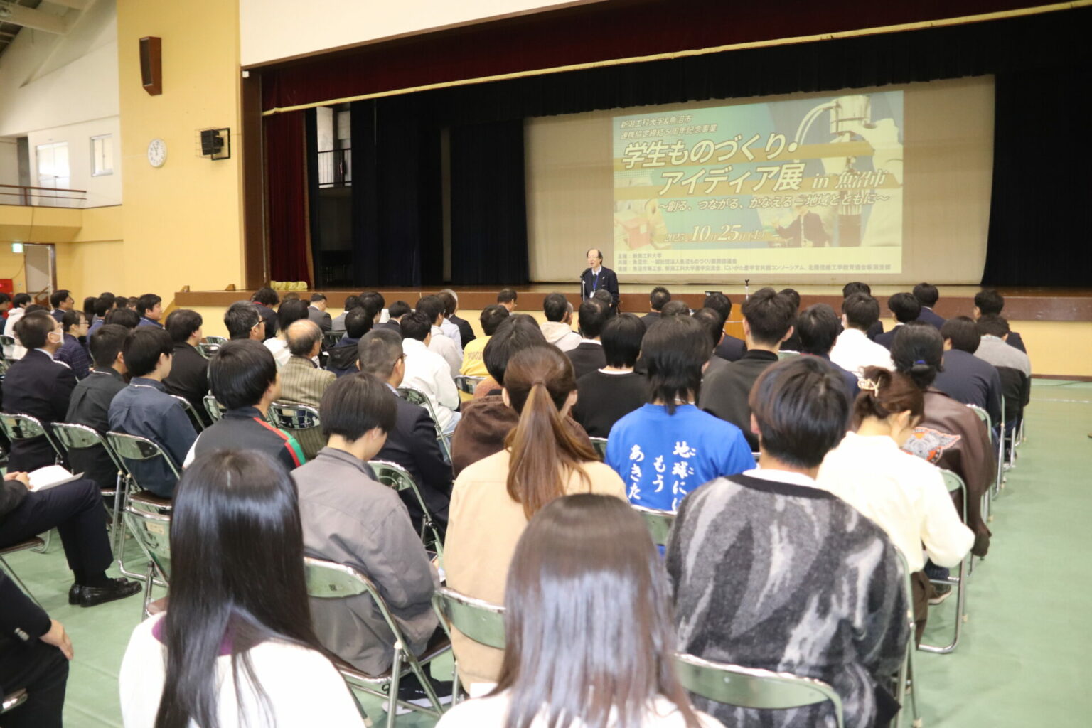 10月25日(土)、魚沼市総合体育館にて「学生ものづくり・アイディア展 in 魚沼市」が開催されました。本イベントは、新潟工科大学と魚沼市の連携協定締結5周年を記念し、「創る、つながる、かなえる-地域とともに」をテーマに、地域と大学が交流する場として企画されたものです。