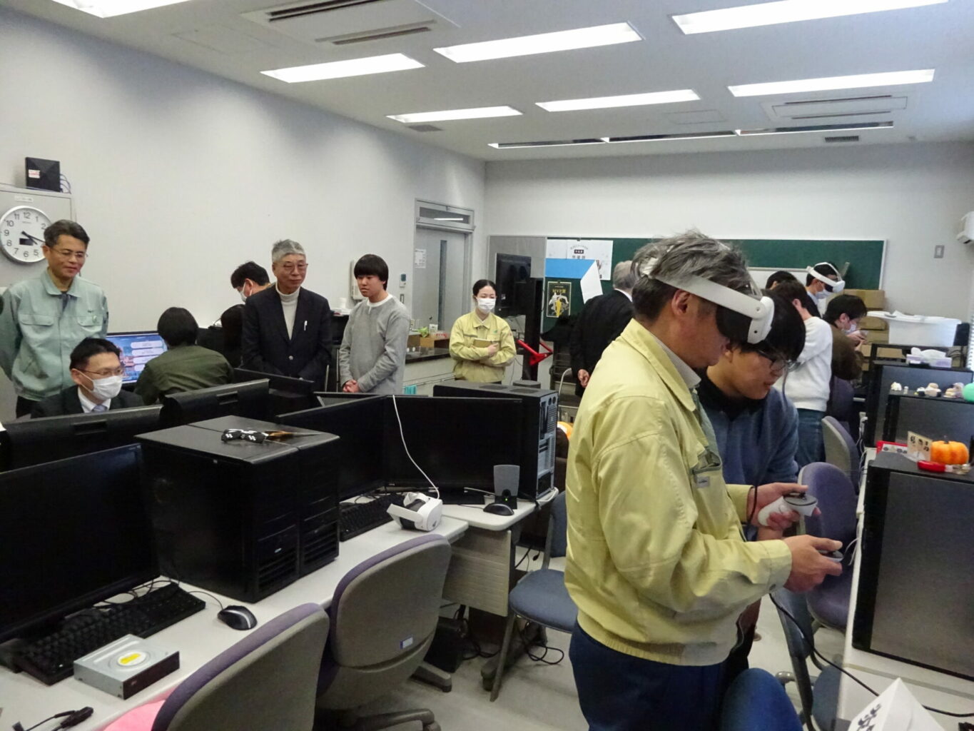また、インタラクティブICT研究室(本学 電子情報学系 山岸 芳夫 教授)および建築振動研究室(本学 建築都市学系 涌井 将貴 准教授)では、教員と学生によるVRツールを使用した研究紹介と体験講座が実施されました。