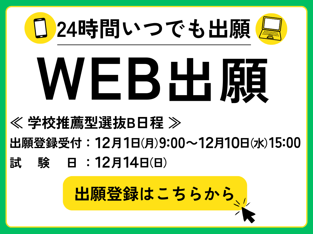 2026年度 学校推薦型選抜B日程の出願が、12月1日(月)から始まります。