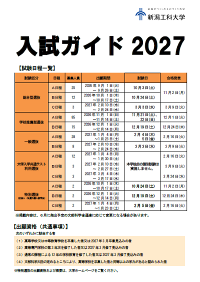 このほど、入試ガイド2027および入学案内を発行しました。入試ガイドは上記の内容がPDFでご覧いただけます。入学案内も後日、デジタルパンフレットで公開します。
